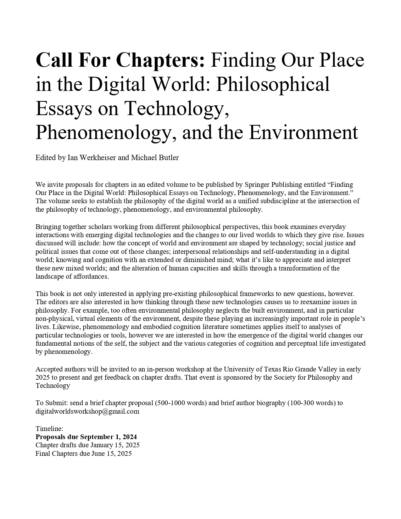 We produced a special issue of Techné: Research in Philosophy and Technology, the official journal of the Society for Philosophy and Technology, on the topic of Digital Worlds. You can now view it on their website.